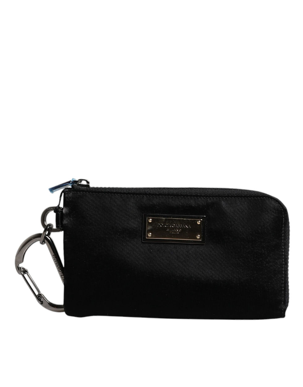 Black Nylon Logo Plaque Keyring Pouch Clutch Bag
